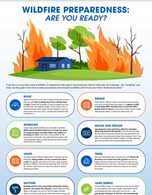 Download Wildfire Preparedness TipsWebsites like DisasterSafety.org and Ready.gov are great resources for any natural disaster or emergency.